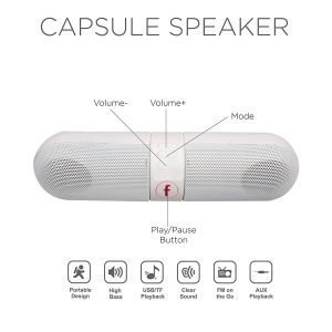 Pill Capsule Bluetooth Stereo Beats Speaker with FM/Pendrive SD card input