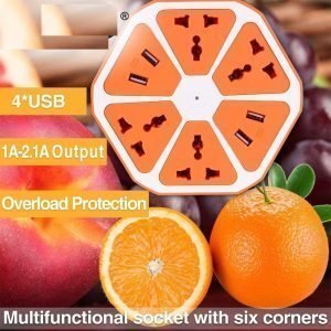 4-Outlet with 4-USB Hexagon Creative Power Strip Unique Design.This is multi tasking extension board. Rated voltage:250V, Rated current:10A, Rated power:2500W, socket:4, USB_aport: 4, Cable lenght:1.7M.